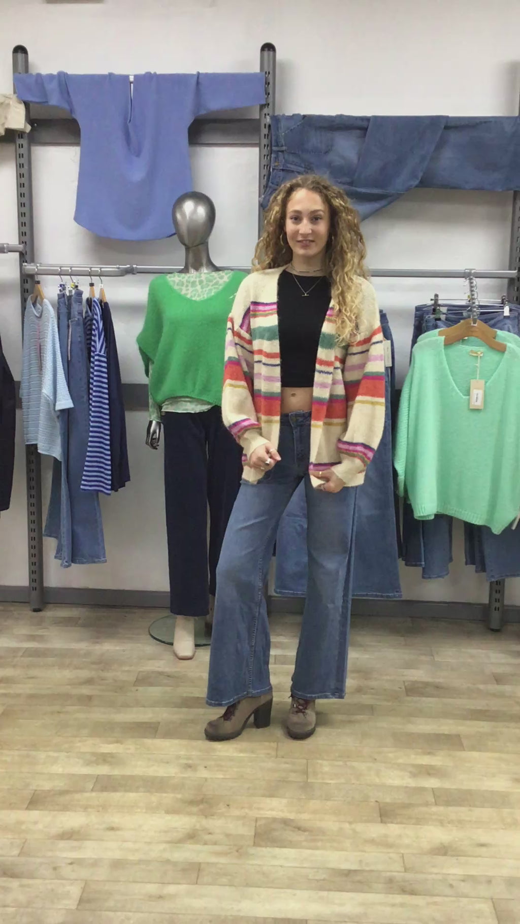 STRIPE BLLN SLV CARDI
