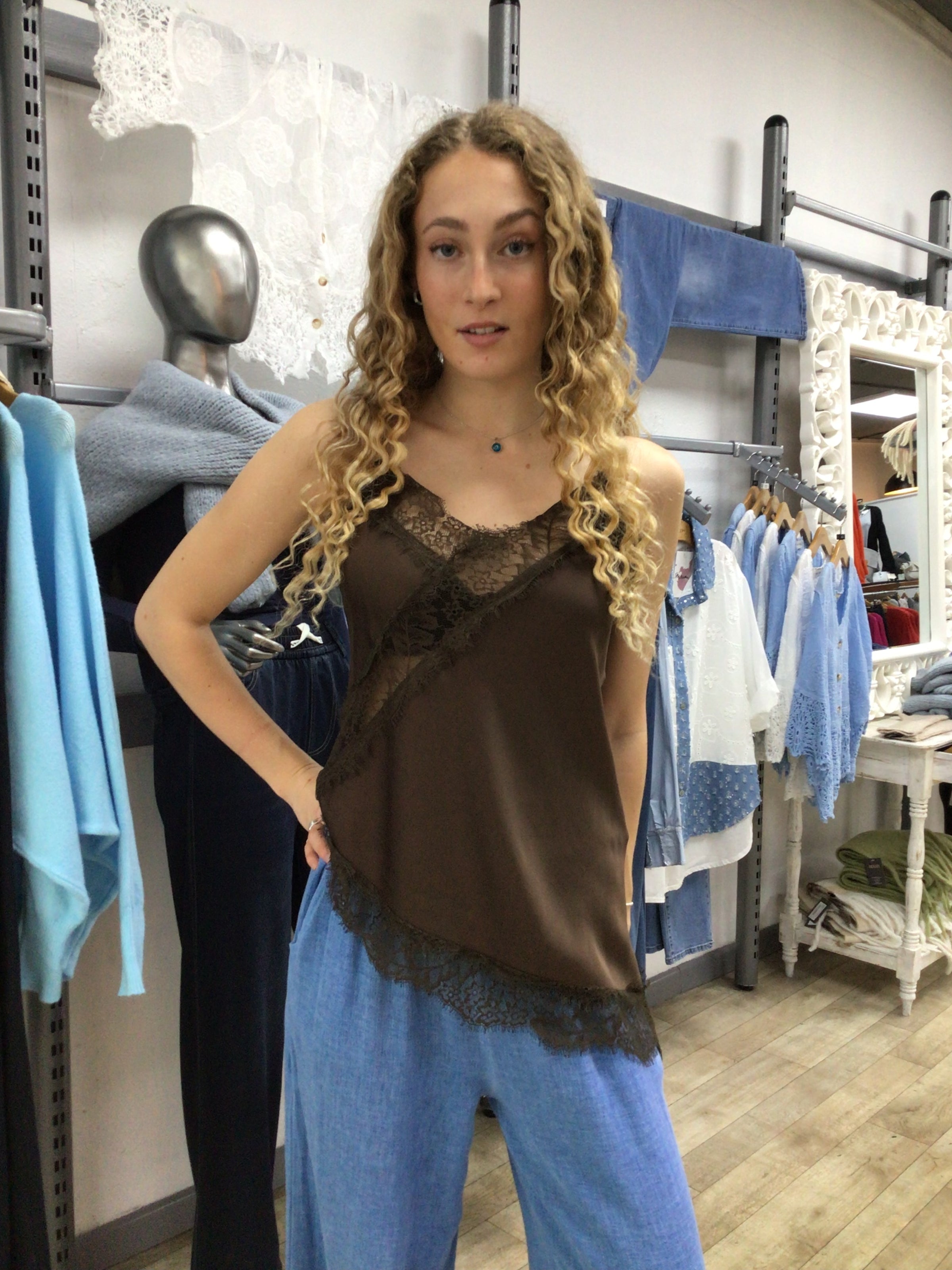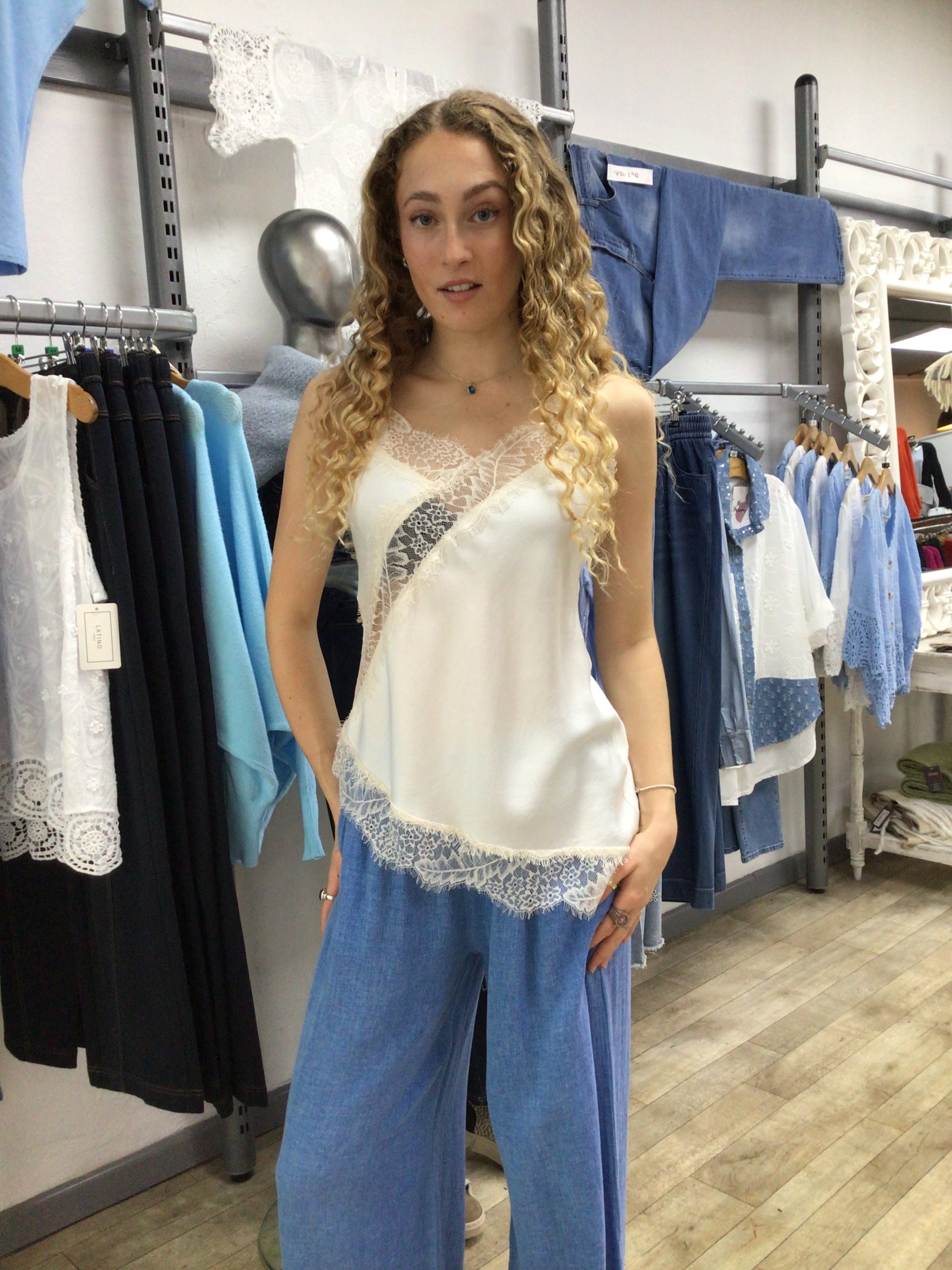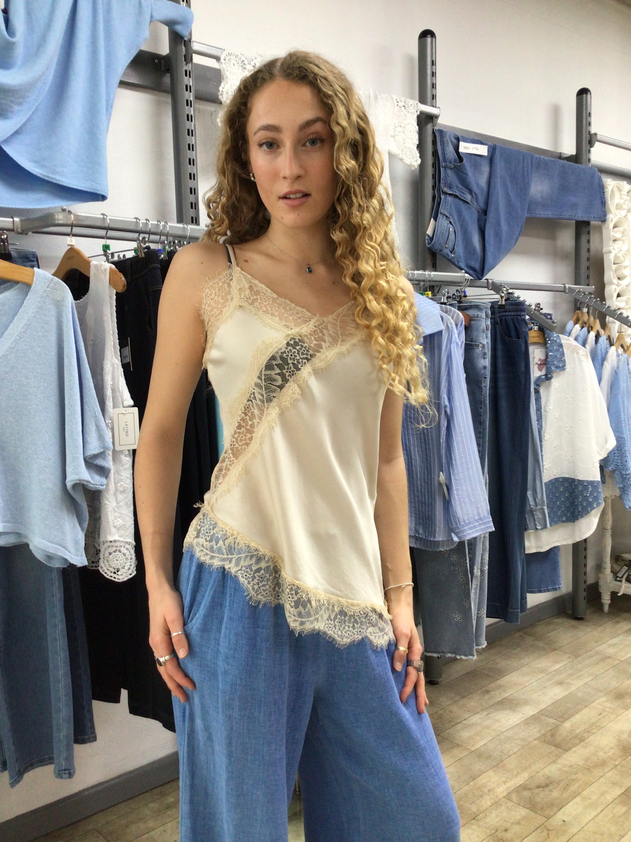 Asymmetric Lace Cami Top - Silk Mix