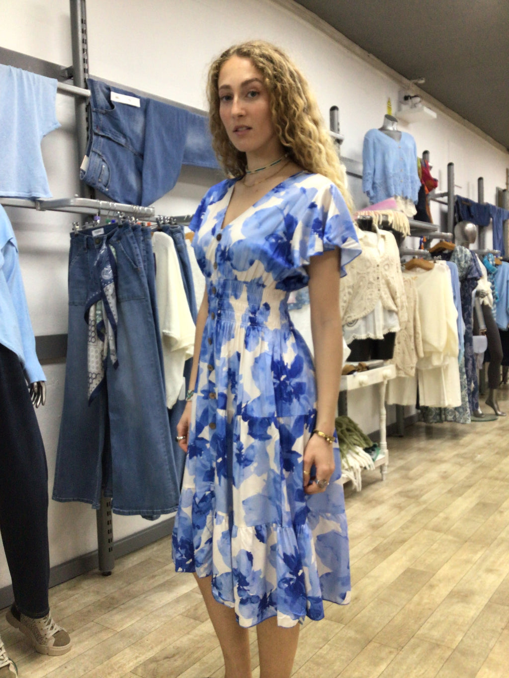 V-NK BTTN MIDI DRESS
